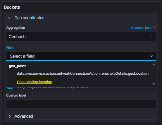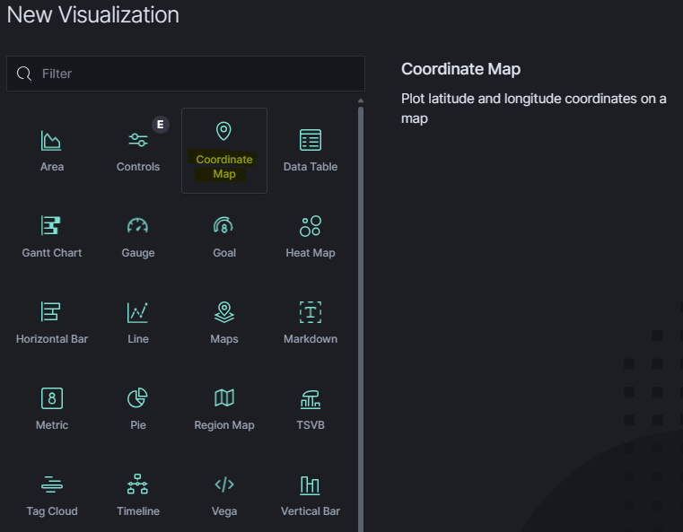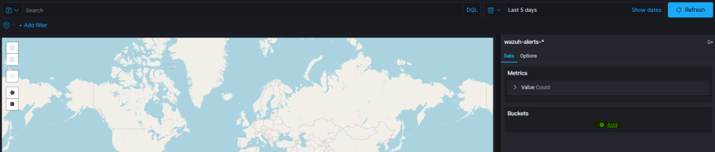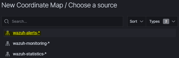 - Choose “wazuh-alerts-*” as the data source for the coordinate map.