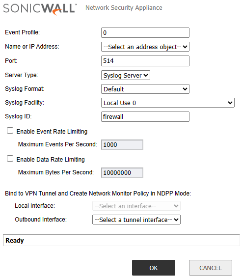 - Set syslog ID to sonicwall and click OK to complete the configuration.