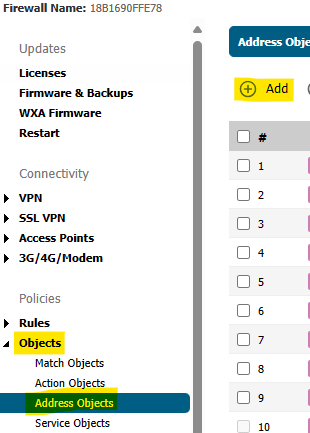 - Select the previously created Address Object from the Name or IP Address drop-down menu.