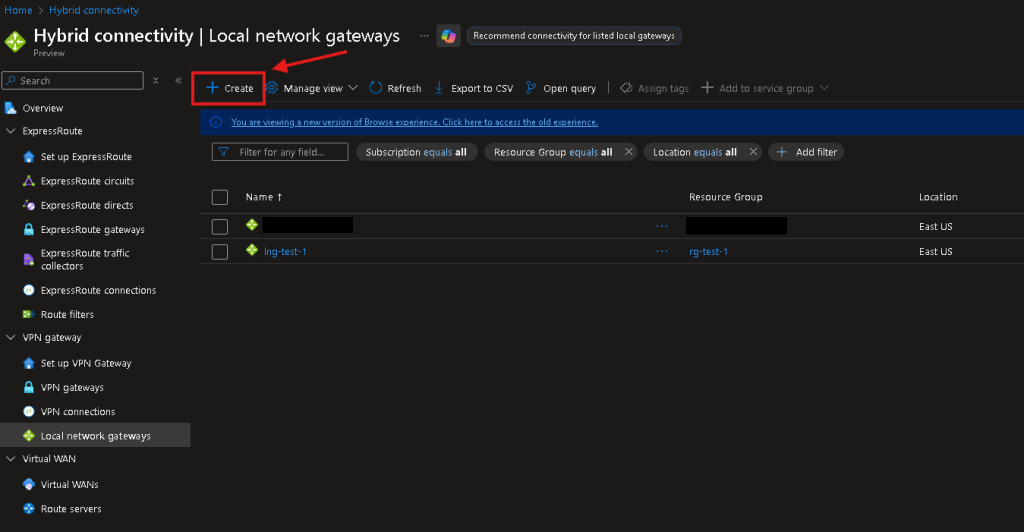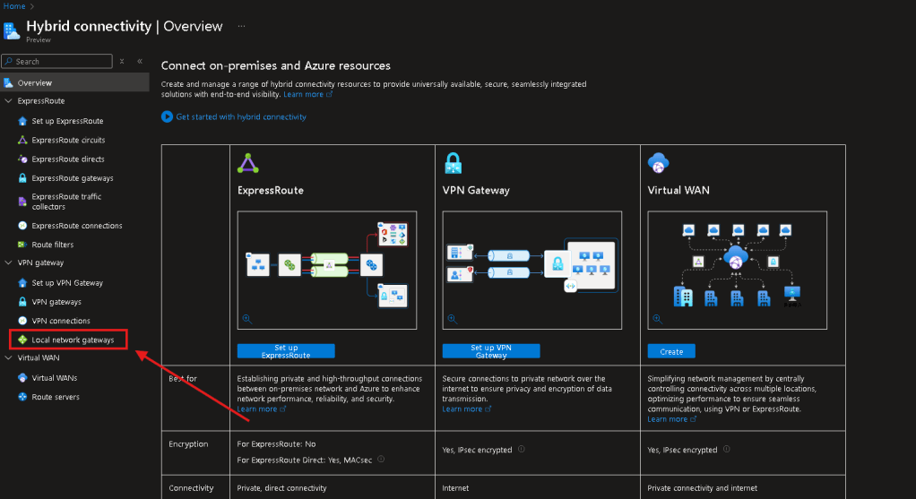 - From the Azure portal, navigate to “Hybrid Connectivity”