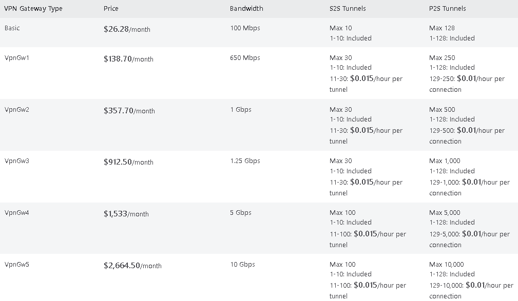 While there are these downsides, AZVPNGW Basic SKUs are an inexpensive option for cloud connectivity. Taking a look at the AZVPNGW Pricing SKUs below, you can see the large pricing & feature differences…