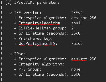 - Note the IKE parameters on a Basic SKU VPN are in section 2, listed as…