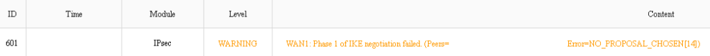 - Look for ‘Warning’ level logs associated with ‘IPSec’