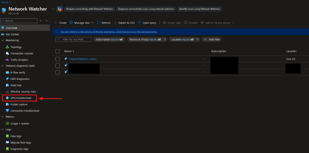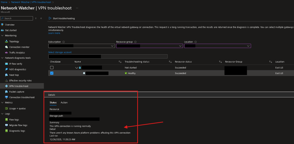 - Select your subscription, resource group, and location where the VPNGW is located.